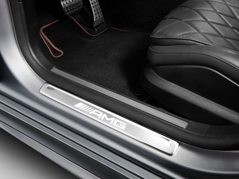 Tax IncludedLooks good and at the same time provides better orientation in the dark: the exchangeable cover in silver featuring white AMG lettering for door sills featuring LED lighting. The exchangeable cover not only convinces with simple assembly and a precision fit, but also with its durability and long service life.