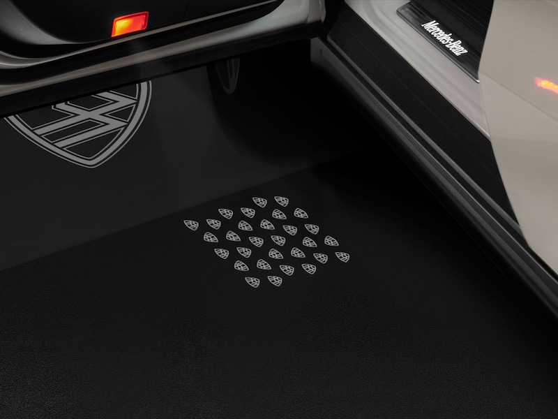 With the LCD projector with an animated Mercedes-Maybach pattern every Mercedes-Benz turns into a visual highlight before you get in. The two-piece set projects an animation of the brand pattern onto the ground next to the opened driver or front passenger door and is automatically activated when the door is opened. The LCD projector also automatically deactivates after max. 600 seconds. Depending on the vehicle, the set is also available for the rear doors, making it possible to conveniently get in and out thanks to additional light. The LCD projector does not simply replace the standard exit lights in the doors, but also stages an appealing eye-catcher in dark conditions. We recommend installation by a Mercedes-Benz dealer.